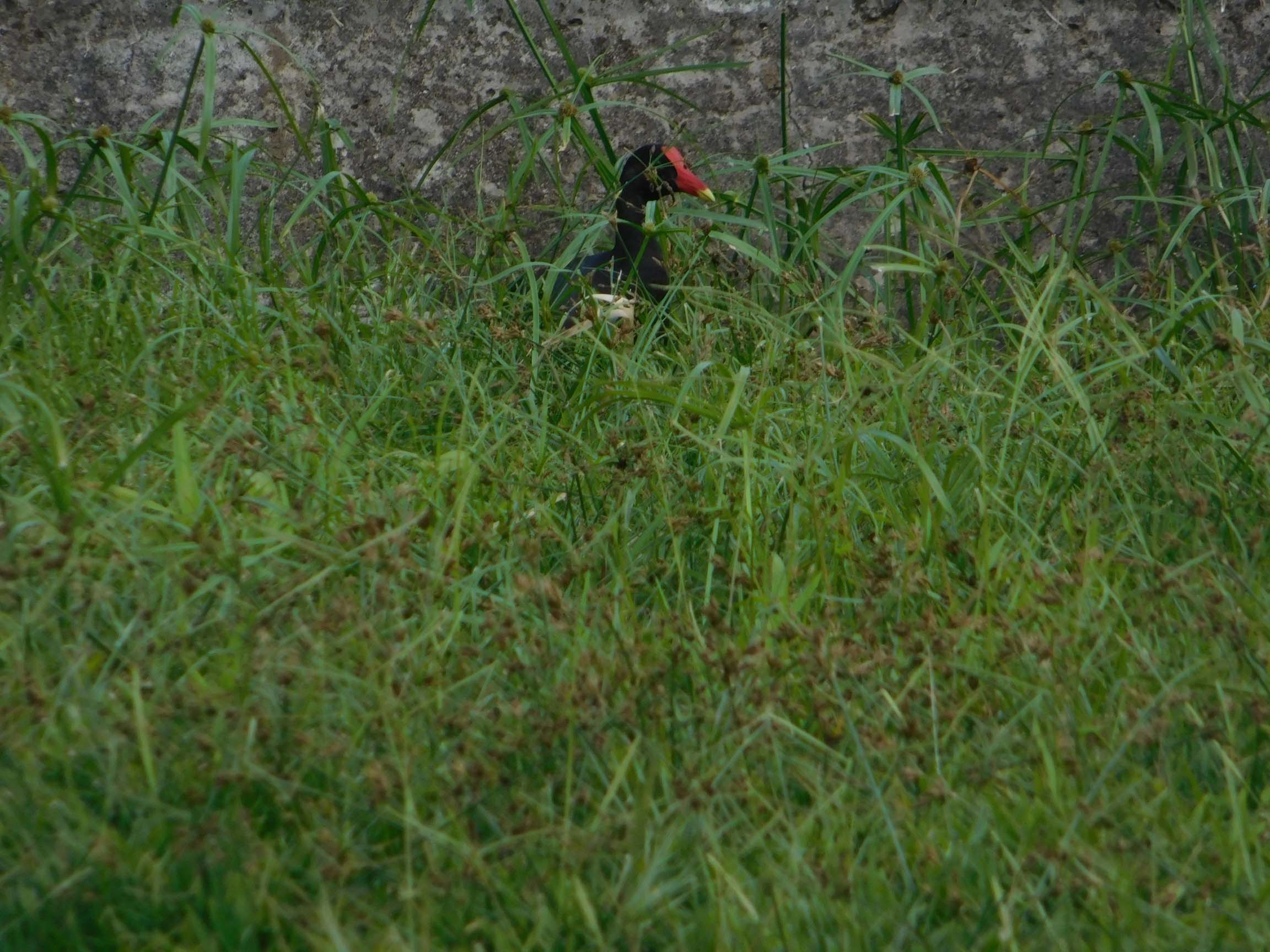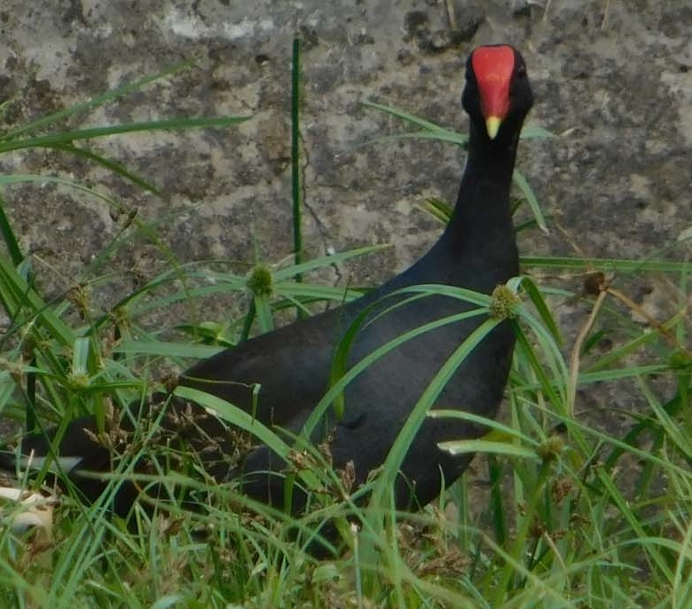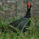 Gallinule poule d’eau ou poule d’eau à cachet rouge. Gallinula chloropus Rallidés.