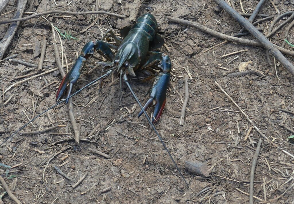 Cherax quadricarinatus ou Ecrevisse bleue d’Australie, ou Ecrevisse à pinces rouges, introduite en Martinique dans les années 2000 pour l’aquaculture. Bien identifiée comme une espèce exotique et envahissante. (Baudry et al 2020).