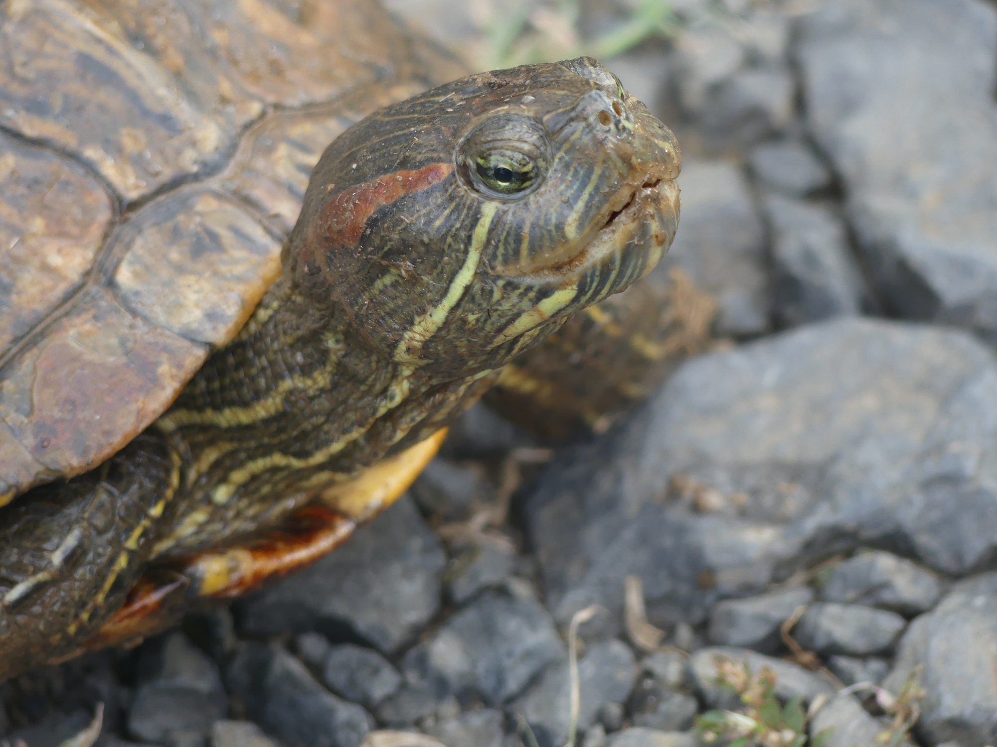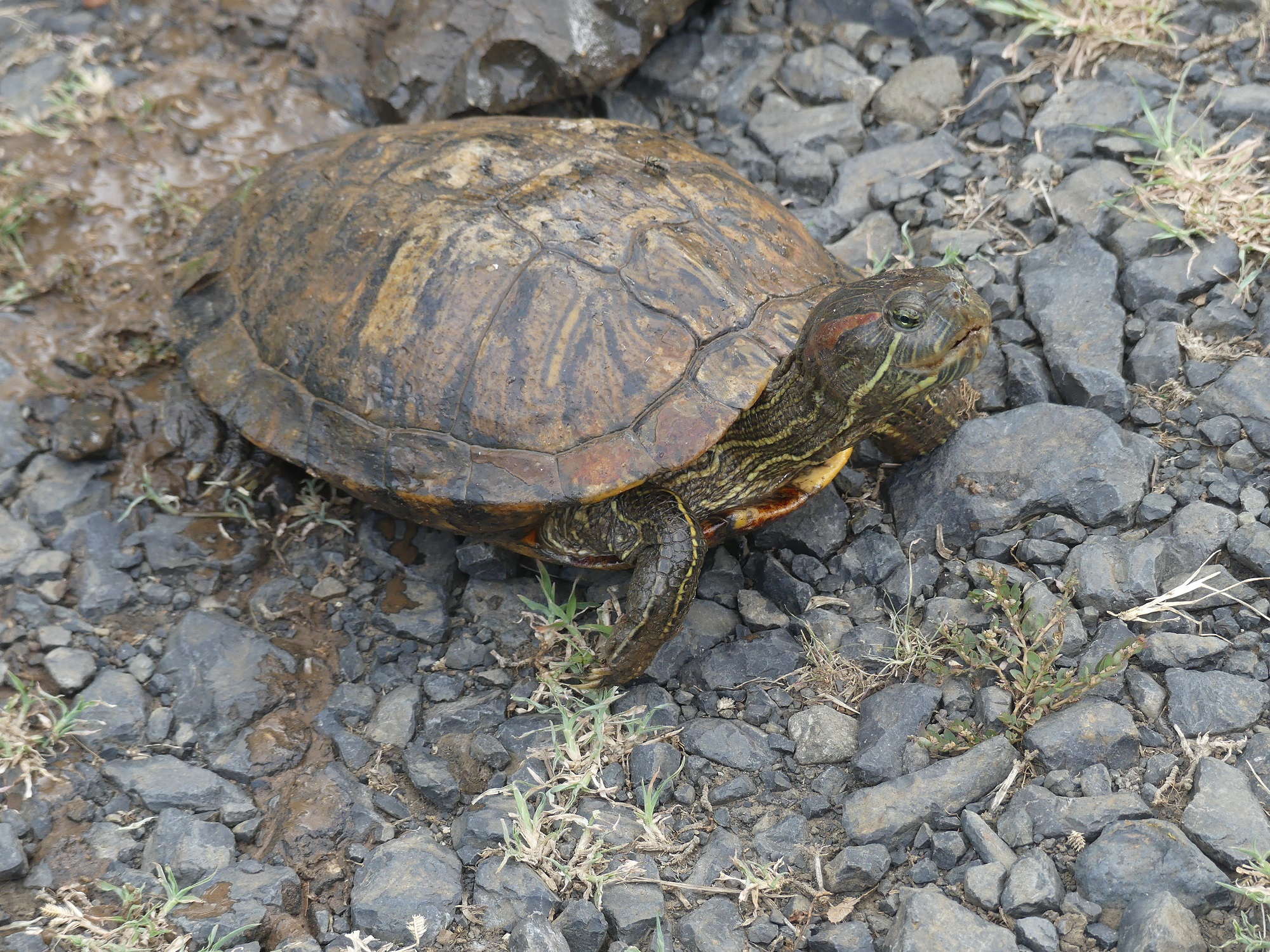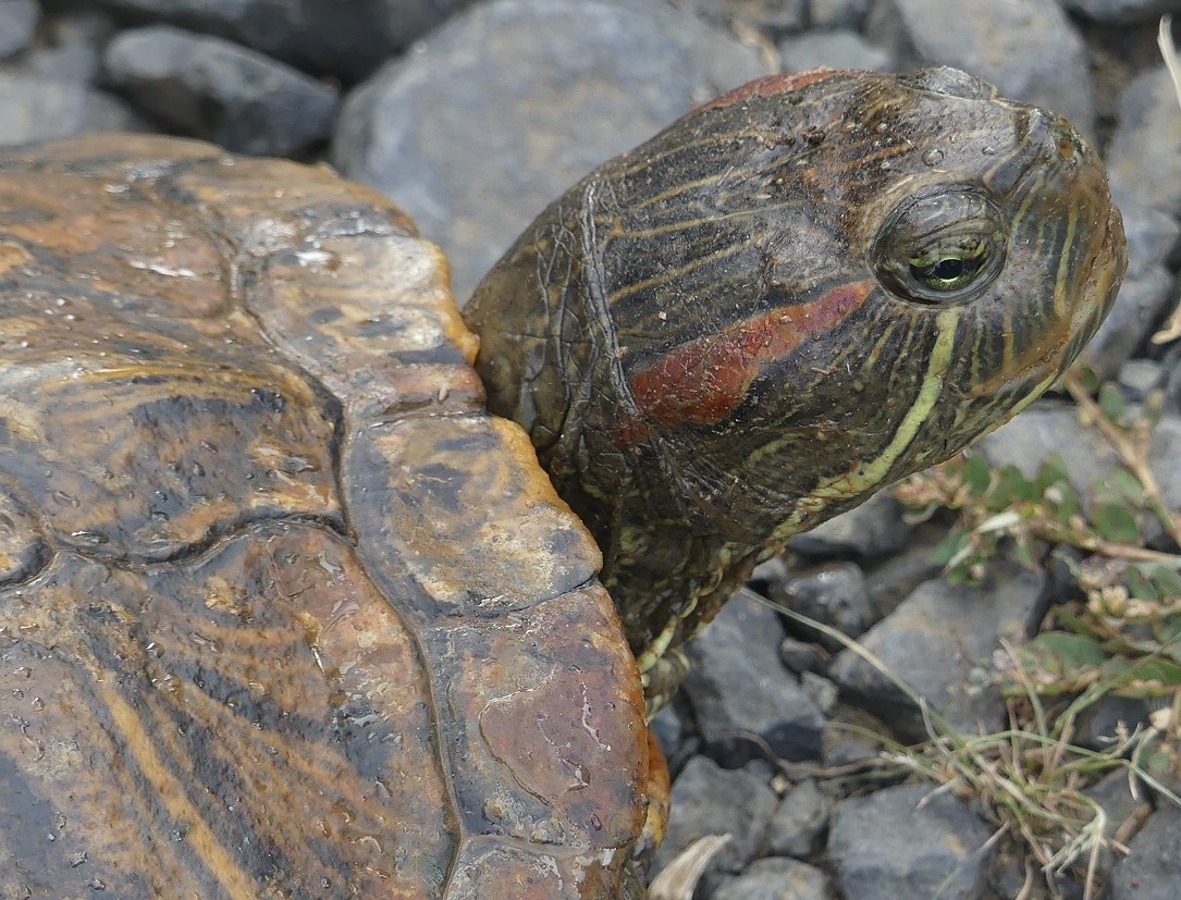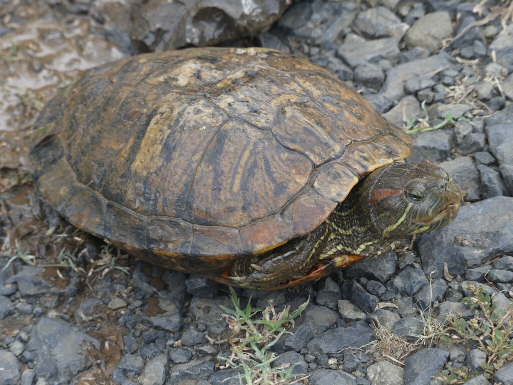Sous espèce Trachemys scripta elegans ou Tortue à tempes rouges.