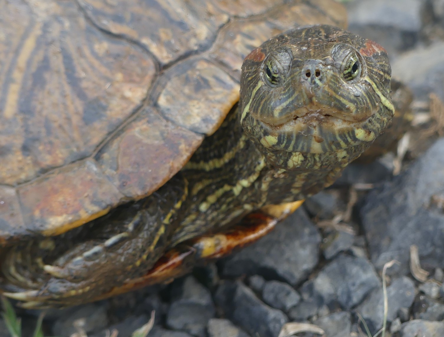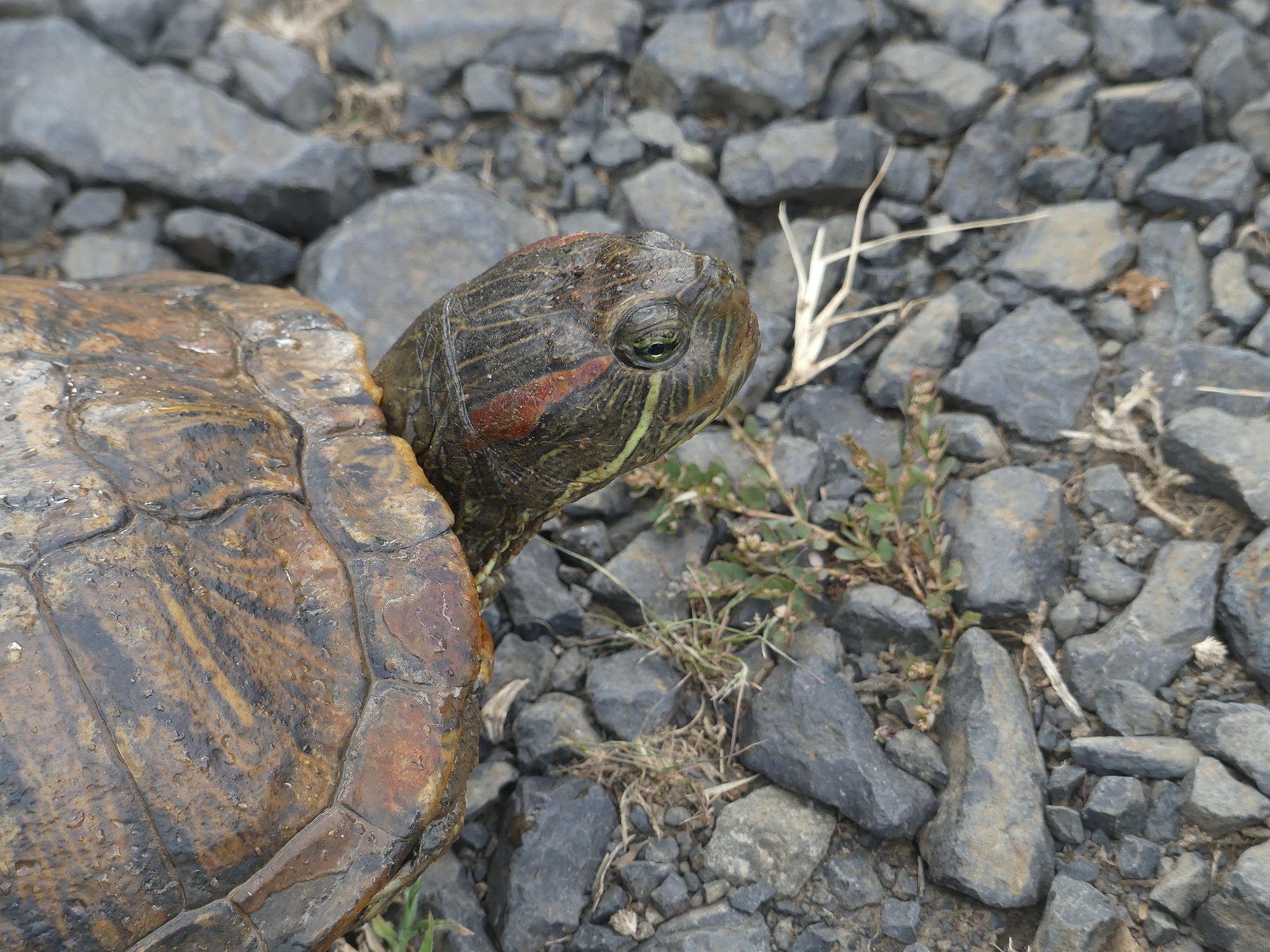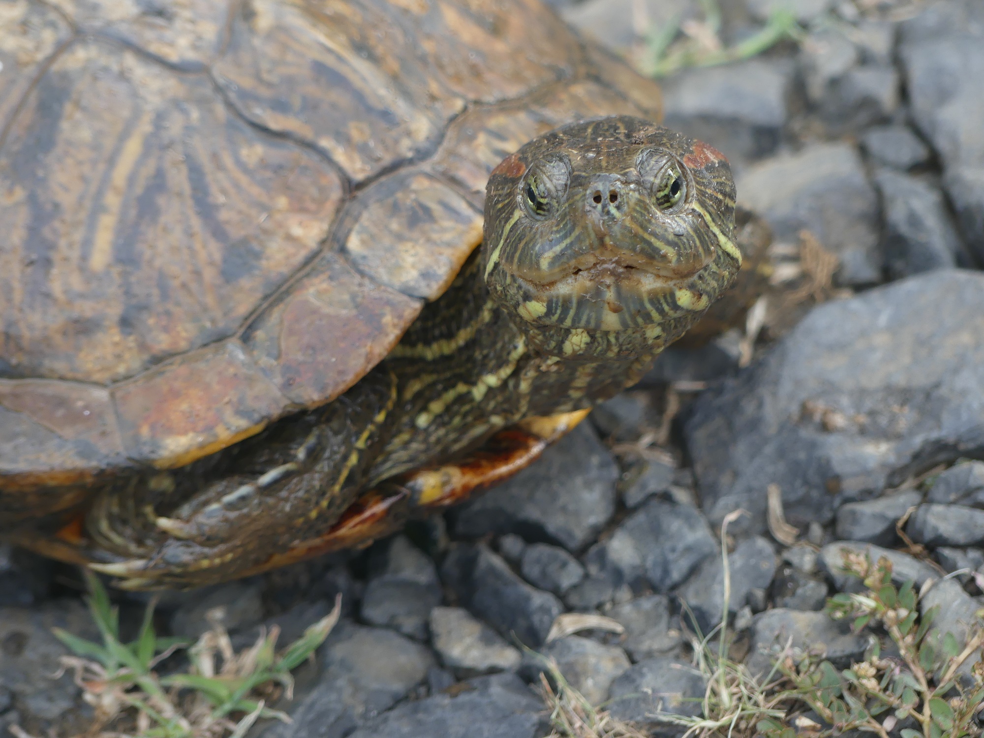 Sous espèce Trachemys scripta elegans ou Tortue à tempes rouges.
