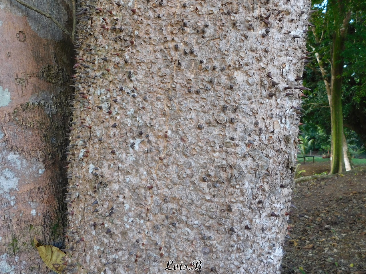 Son tronc droit est couvert d’épines noirâtres de 1 à 2 cm